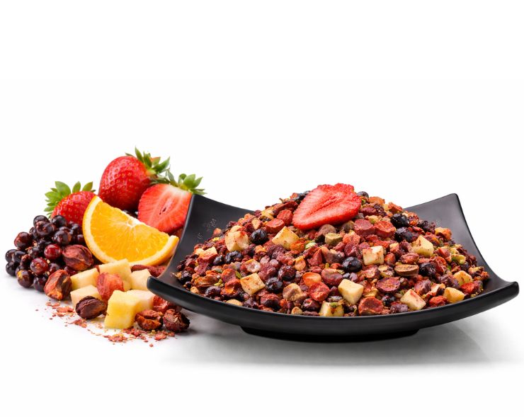 Holunderbeeren verleihen dem Tee zusätzlich eine dunkle, beerige Tiefe und runden das Aroma harmonisch ab. Das Ergebnis ist ein intensiv fruchtiger Früchtetee, der sowohl heiß als auch als erfrischender Eistee begeistert.