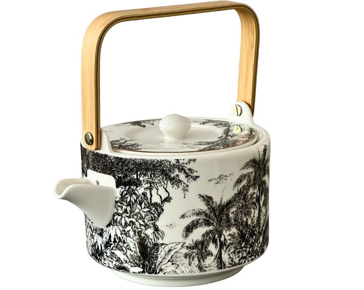 - Edle Porzellan-Teekanne mit tropischem Schwarz-Weiß-Motiv
